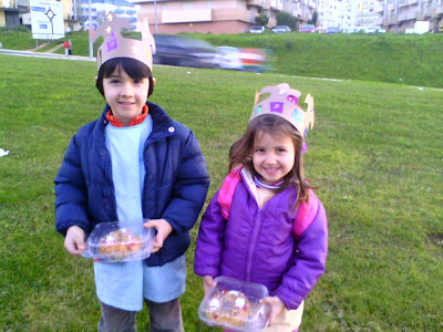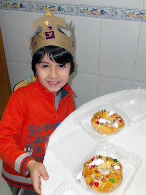 Em comemoração ao dia de Reis na escola, exibem o bolo que fizeram