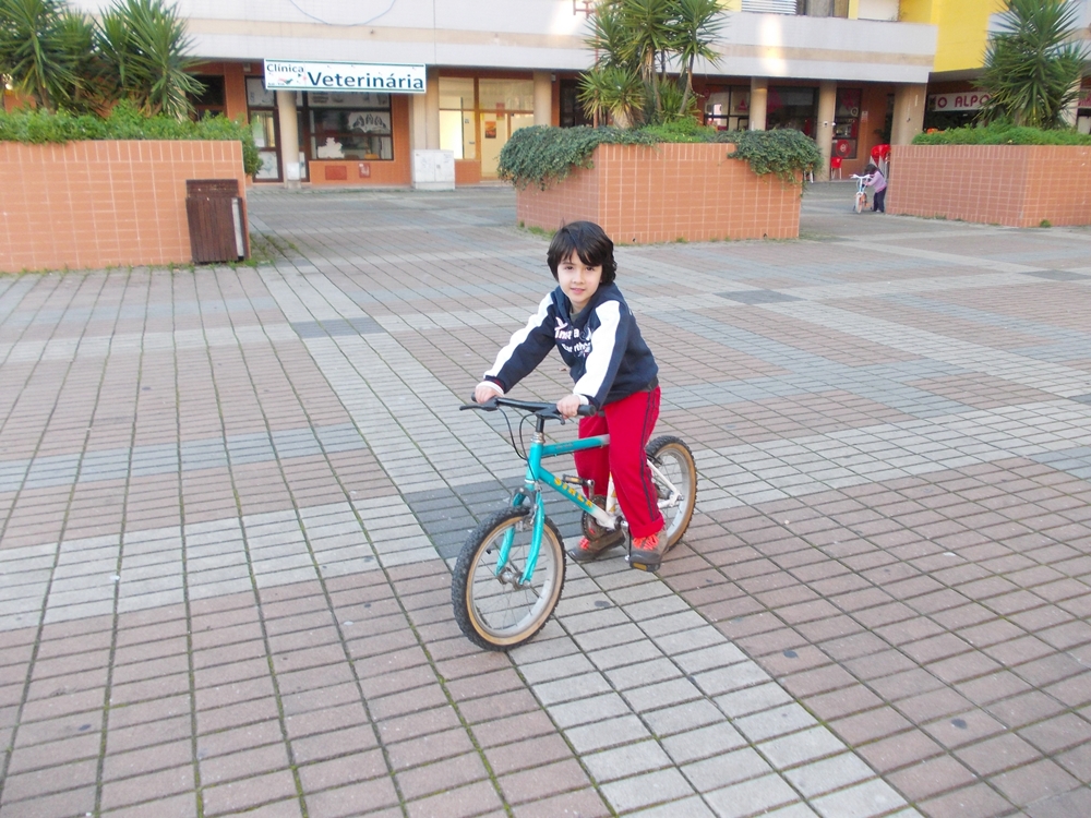 Um menino orgulhoso por ter aprendido a andar de bicicleta