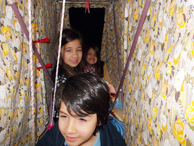 Uma brincadeira que toda criança gosta, cabaninha (essa feita de lençol e varal)